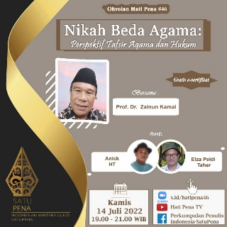 Wartanisnis biz.id – Perkumpulan Penulis Indonesia, SATUPENA, akan mengadakan diskusi tentang nikah beda agama, dilihat dari perspektif...