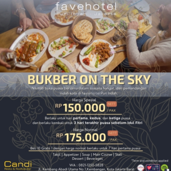 Wartabisnis.biz.id-Jakarta, Candi Resto & Rooftop Bar dengan bangga mengumumkan paket santapan Ramadhan eksklusifnya, “Bukber On The Sky,” yang dirancang untuk memikat pengunjung dengan perjalanan kuliner yang luar biasa di tengah pemandangan matahari terbenam perkotaan yang mempesona di atas rooftop favehotel Puri Indah di Jakarta Barat.