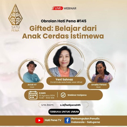 Dengan Narasumber Yeni Sahnaz SATUPENA Akan Diskusikan Bagaimana Belajar dari Anak Cerdas Istimewa