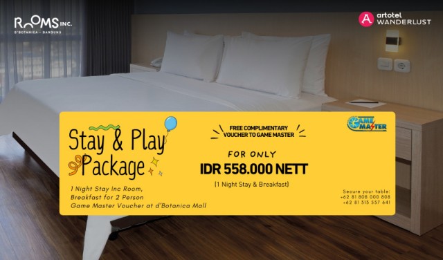 Wartabisnis.biz.id-Bandung, ROOMS INC D’Botanica Bandung berkolaborasi dengan Game Master menghadirkan promo spesial “Stay & Play” dengan harga mulai dari Rp.558.000 per malam. Promo ini menawarkan pengalaman staycation seru lengkap dengan voucher gift Game Master untuk menambah keseruan liburan bersama keluarga, pasangan, atau teman. Dengan konsep yang menggabungkan kenyamanan menginap dan hiburan interaktif, program ini dirancang untuk memberi kan momen tak terlupakan selama berada di Bandung.