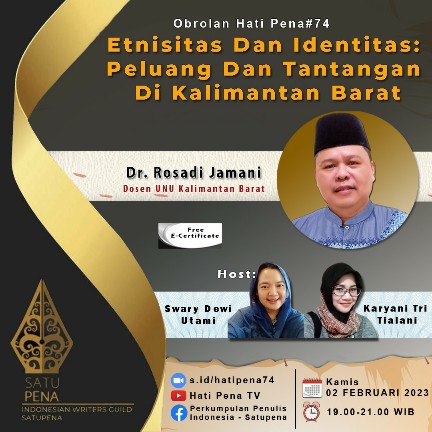Wartabisnis.biz.id-Jakarta, Perkumpulan Penulis Indonesia, SATUPENA, akan mengadakan diskusi bertema “Etnisitas dan Identitas: Peluang dan Tantangan di Kalimantan...
